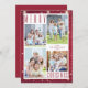 Simple, modern holiday photo collage greeting card featuring 4 pictures with a MERRY CHRISTMAS greeting against a cranberry red background with lights. Include four photos and your custom text on the front and/or back to include a year in review summary or Christmas letter (optional). PHOTO TIP: Select photos with the subject in the middle or pre-crop them in similar shapes as shown and/or use the CROP tool for placement within the template area. ASSISTANCE: For help with design modification or personalisation, colour change, resizing, transferring the design to another product or if you would like coordinating items, contact the designer BEFORE ORDERING via the Zazzle Chat MESSAGE tab below or email makeitaboutyoustore@gmail.com.