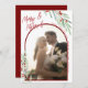 Minimalist Elegant Chic Merry and Married Mistletoe Newlyweds Arch Photo Christmas Holiday Card - An elegant and festive one photo Christmas card with watercolor winter greenery in classic red and green holiday colours. Perfect for newlyweds sending their first Christmas together cards to family and friends. Personalise by adding your own wedding photo. All text is editable.