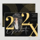 Modern geometric photo arch graduation announcement. The design features an arch line pattern with a photo arch frame. Customize with your grad's photo placed inside a modern arch photo frame. Large text 202X to display the graduation year displayed boldly with "Graduate" Displayed in elegant script. Personalize with the grad's name and school. The reverse side features a modern geometric arch pattern that beautifully complements the front grad card design. You can change the background color as well as the arch shapes to any color to complement your photo. Designed by Moodthology Papery.