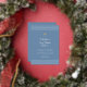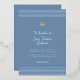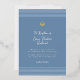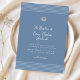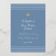 Timeless baptism invitation that combines soft blue stripes on deep blue background, a delicate gold foil shell cross symbol, and handscript font. Elegant and modern.