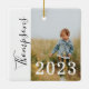 Minimal Modern Bold Year Family Name Script Photos Ceramic Ornament