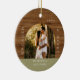 Celebrate your engagement with this elegant mid-century modern ornament, featuring a stylish faux brown wood and white two-tone design. A bold sage olive green stripe along the bottom highlights the couple’s name, while a minimalist square frame displays your favorite engagement photo. With one photo on each side, this ornament is a beautiful double-sided keepsake. The phrase “Engaged & Merry”, the year, and your names are displayed in a clean, modern font around the image – perfect for adding a personal touch to your holiday decor or gifting to a newly engaged couple. Design and Layout by ©Moodthology Papery