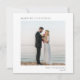 Elegant square holiday card for newlyweds with a minimal design that features your photo, "Married Christmas," your name and the year in simple modern typography.