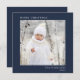 Elegant blue square holiday card with a minimal modern design featuring your photo, and "Merry Christmas," your name and the year in simple white typography.