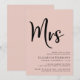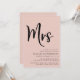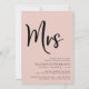 Minimal modern blush pink bridal shower invitation with "Mrs" written in a large elegant script.