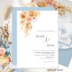 Minimal, Modern Peach, Cream, Blue Floral Wedding Invitation