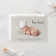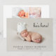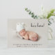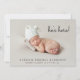 Minimal photo birth announcement to announce the arrival of your baby to family and friends. Your newborn's photo fills the front and is overlayed with "she's here!" "he's here!" or "I'am here!" in a contemporary script (you can move this text to another area on the card depending on your photo by selecting "edit in design tool"). Add his or her name, arrival date and birth stats below. On the reverse side, add four additional family photos, a "welcomed by" message and the parent's and siblings first names.