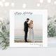 Elegant photo square Christmas card with a minimal design that features your photo, "Happy Holidays" in a contemporary script, and your name and the year in simple typography.