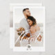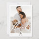 Thank your wedding guests with our modern and minimal two-photo wedding thank you card. The design features a large photo on the front with "Thanks" displayed in a modern script. Modern arch palm tree monogram design to customise with couple's monogram. The reverse side features a second photo with a "Love" script overlay and personalised with your own thank you message. Design by Moodthology Papery