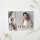 Minimal modern graduation party invitation postcard featuring the graduate's photo overlayed with a strip of three smaller square photos and "Graduate," their name, school and class year in simple typography. On the reverse side, add the party details.