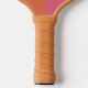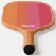 Vertical striped pink and orange toned pickle ball paddle with your name printed in a script font.
