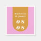 Our minimal, bold retro style wedding napkin is perfect for the trendy couple who loves standing out and making a bold statement. Our design features a bold bright pink and yellow colour combo. A simple abstract arch shape creates a bold look with the wedding date displayed boldly in white large font along with the couple's name. Designed by Moodthology Papery