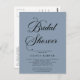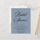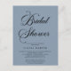 Minimal Modern Script Bridal Shower Invitation. Shown in dusty blue, however, many colours will be available. You can also easily change the background colour in the design tool to coordinate with your wedding theme.