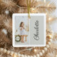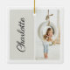 Add a personalised touch to your family’s holiday tree with this minimal and modern keepsake photo ornament. Featuring a vertical portrait photo layout on a soft blush pink background, this ceramic ornament can be customised with your child’s name and two cherished photos—one on the front and one on the back. Its clean, simple design and elegant script make it a timeless holiday keepsake that will be treasured for years to come.