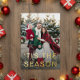 Create a personalised and heartfelt holiday card with this elegant design. Featuring your own special photo on the front, this card captures the joy and warmth of the season. The gold foil text proclaiming "Tis the season" adds a touch of festive sparkle, while the soft red background and corner splashes of white snowflakes create a winter wonderland atmosphere. The modern white text ensures a clean and contemporary look. This card is the perfect way to share your holiday greetings with loved ones, creating lasting memories of the season. Created by Simply Farmhouse Press.