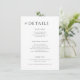 Elegant simple black and white wedding details invitation insert card with a trendy bold typography script and bride and groom name initials monogram on the backside.