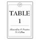 This classic, simple wedding or event table number is an elegant touch on your big day. Framed by a simple yet chic border with space for the couples initial monogram, the timeless black and white text shares the details to get you guests to the right place!