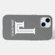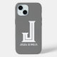 This minimal monogram grey iphone 15 case is trendy yet and professional. It features your first initial in a bold trendy font and your name in a coordinating classic font in white. It's simple and classy.
