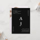 This modern minimalist black and white wedding invitation features a big centre monogram framed with wedding detail typography and a full photo back.