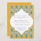 Modern Moroccan blue, yellow and golden tile, Moroccan art personalised wedding invitation. This product can be easily personalised. If you need help with the customisation of the product or need matching products kindly please contact me via Zazzle.