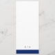 Modern navy blue wedding program with a bold band across the top and bottom. Your names are in a classic serif font and your details are in a combination of a modern sans serif font and an elegant script. The back has a band along the bottom along with your monogram. This simple and minimal design with traditional wording is great for a formal wedding.