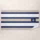 Minimal Navy Blue Grey White Stripes Monogrammed Beach Towel