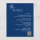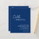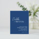 Modern navy blue budget all in one wedding invitation featuring a simple and minimal design with the bride's name in an elegant script and the groom's name in a contemporary sans serif font. Below in the lower right corner are your event details in a minimalist layout. The back has your additional details and QR Code, so you can skip the enclosure card and RSVP card.