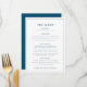 Modern very simple graphic dark navy and white event menus. Perfect for a simple minimal or modern wedding or formal corporate event dinner. Edit with your own event menu details. Other matching items available. Designed by www.mylittleedenweddings.com