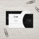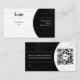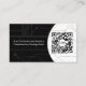 The back of the card continues the same balanced design concept. The black side highlights your call-to-action message inviting recipients to scan for a complimentary strategy boost, while the white side features a large QR code area framed by subtle networking line art with a soft shadow background.