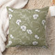 Minimal Olive Green Floral Line Art White Flower Cushion