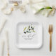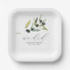 Add a rustic yet elegant touch to your wedding with these personalised paper plates, featuring a minimal botanical design. The olive paper plates showcase a simple watercolor greenery pattern in soft shades of green, perfect for minimalist weddings and elegant celebrations.