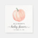 These minimal gender-neutral baby shower napkins feature a cute orange watercolor of a pumpkin, "baby shower" in a pretty stylish script, and the mother-to-be's name and shower date in modern and handwritten typography.