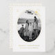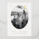 Elegant and minimal photocard with a single oval shaped photo and a border with a foiled bow tie on the top part of the oval shaped border.