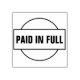 This plain rubber stamp design features the message "PAID IN FULL". It could perhaps be used to indicate that a bill or invoice has been fully paid.