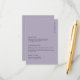 A minimalist yet chic wedding details card designed in pale purple for timeless sophistication. The layout embraces modern typography, with subtle elegance. Its classic aesthetic is elevated by a luxe finish, creating a striking contrast that feels both contemporary and enduring. Perfect for couples who value understated refinement, this invitation exudes confidence and style while remaining effortlessly graceful.