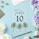Bring a chic, tropical vibe to your reception with our Modern Minimal Palm Tree Wedding Table Number Cards. Featuring the table number in bold, minimalist style above a trio of elegantly sketched palm trees, these cards offer a fresh and sophisticated look on a frosted or transparent acrylic background. Designed to coordinate seamlessly with our Minimal Palm Tree wedding collection, these table numbers are perfect for beach and destination weddings. Customise each table card individually by adding the table number, and add each one to your cart for a unique, personalised set. Please note: this table card does not come with a stand.