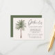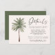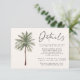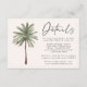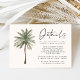 Tropical wedding details card featuring a single palm tree illustration on the left side of the design on an ivory background. "Details" is displayed in a black handwritten script with your wedding details shown below. The palm tree wedding details card was designed to coordinate with our Minimal Palm Tree wedding collection.
