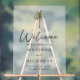 Tropical wedding welcome sign featuring a simple palm tree at the top of the design with "Welcome" displayed in a modern white calligraphy script with a faux frosted acrylic background. Personalise the palm tree wedding sign with your names, wedding date, and wedding location. The acrylic tropical wedding sign was designed to coordinate with our Minimal Palm Tree wedding collection.