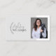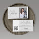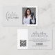 Modern, simple, minimal photography business card. Design features simple monogram with your name and title, photo on a grey and white background. Personalise further with qr code, contact details and social media on the back.