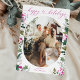 This modern holiday card features your favourite photo with elegant winter botanicals in Pink and a calligraphy heart script. To make advance changes, select Personalise -> Edit using Design tool. The colour of the front of the card can be modified by changing the colour of the Arch element.