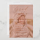 Invite your guests to your graduation party with our simple, elegant, and minimal modern grad party invitation. Design features large bold letters "Grad" displayed over the grad's photo with "Grady Party" in elegant calligraphy. The grad's photo is displayed in the background with an elegant sheer blush pink colour overlay to create an elegant modern look. personalise with grad's name, graduation year, school, and event details. Design by Moodthology Papery.