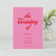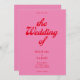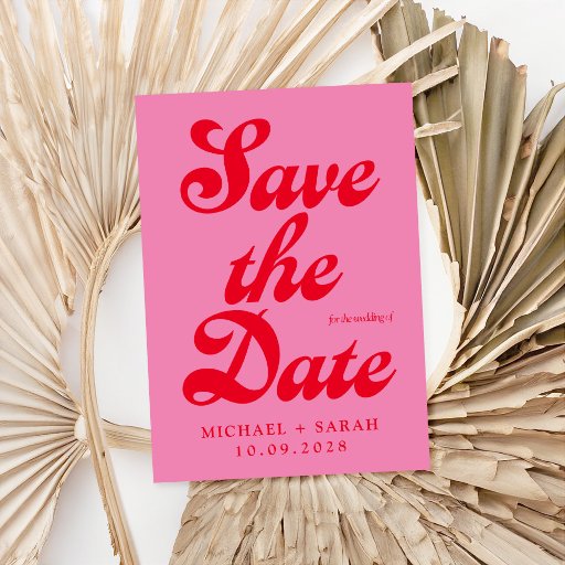 Retro wedding invitation featuring modern retro typography in pink and red colour.