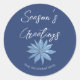 Minimal Poinsettia Blue Merry Christmas Envelope Classic Round Sticker