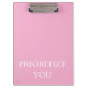 Minimal Prioritize You Quote Dusty Rose Pink Clipboard