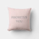 Minimal Prioritize You Quote pastel pink Cushion