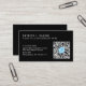 Minimal and elegant black professional business card combining a scannable QR code linked to your website with your branded logo in the middle, and your name, title and contact information (such as email, telephone numbers, company name and mailing address) in clean, simple and modern white typography. Easily input your website URL address to automatically create the QR code and upload your logo (with a solid, nontransparent background). The logo template is sized appropriately to keep the QR code scannable (you should verify by scanning your personalisation with your phone before ordering). On the back add additional text or leave blank.