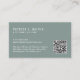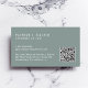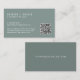 Minimal and elegant sage green professional business card with your name, title and contact information (such as email, telephone numbers, firm name and mailing address) in clean, simple and modern white lettering. Input your website address to create a scannable QR code linked to your website, social media profiles, or other platform that showcases your work, making it easy for others to explore your expertise. On the back, personalise additional text or leave blank.