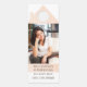 Professional marketing door hanger design perfect for real estate professionals. The front features a full photo layout with a simple blush pink house roof and chimney design along with a framed nameplate that features the company name and phone number. The reverse side features the blush pink home roof and chimney along with a call to action headings, marketing information, and contact details. You can customise the text size, font, colours, and background colour to suit your own personal preference.