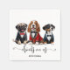 Infuse your wedding celebration with charm and a touch of humour with these delightful custom wedding napkins featuring adorable puppies in a tuxedo. The cute illustration of the Pug, Cocker Spaniel, and Jack Russell, dressed in a tuxedo complete with a red bow tie, is paired with the playful custom text "drinks on us" and date. These napkins are perfect for adding a unique and personalised touch to your cocktail hour, reception, or any part of your special day.