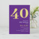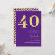 Elegant gold and purple 40th birthday party invitations featuring the number '40' in a large bold serif font, and a modern invite template that is easy to personalise.